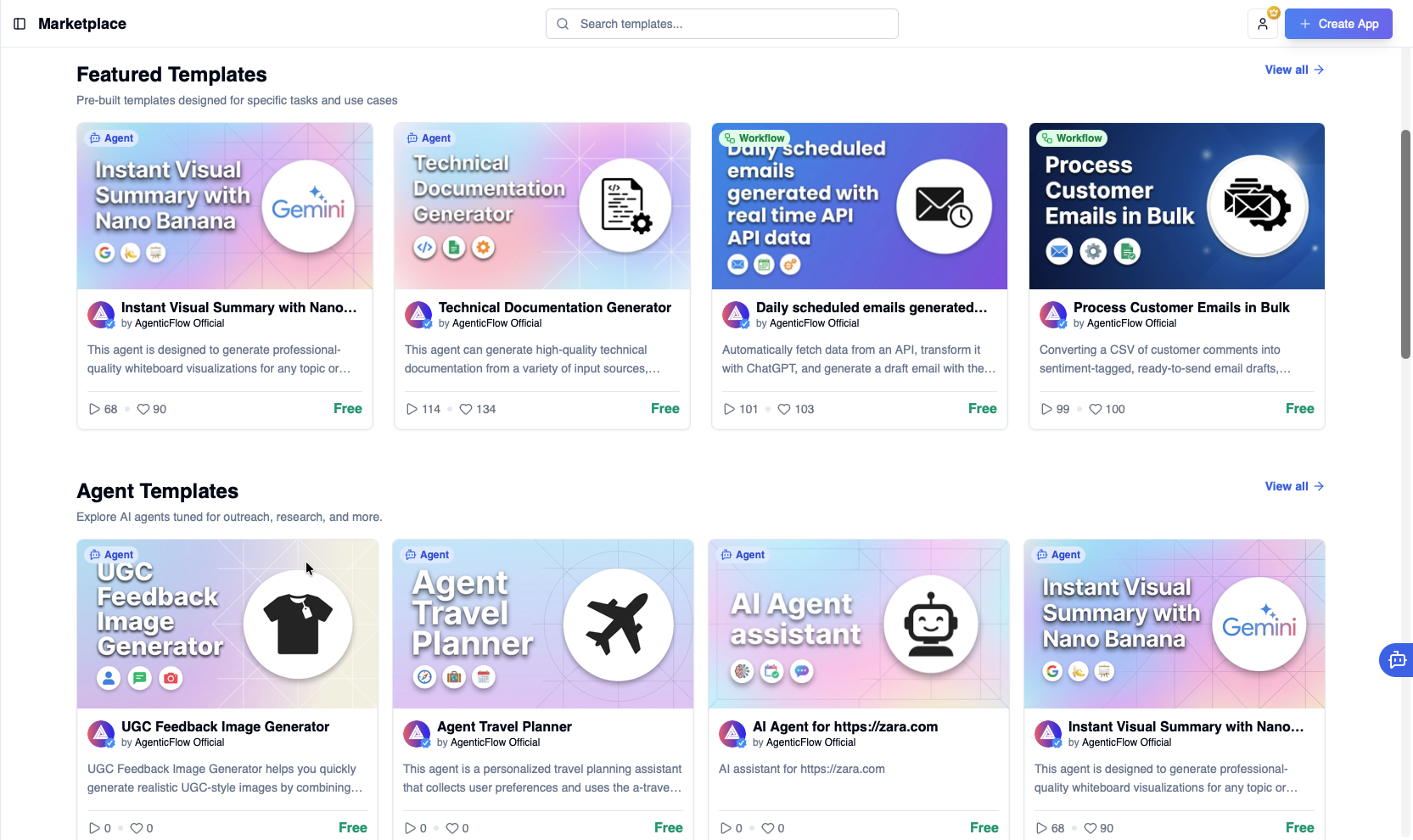 1. **Access Templates**: Navigate to the Templates section from your AgenticFlow AI home page.