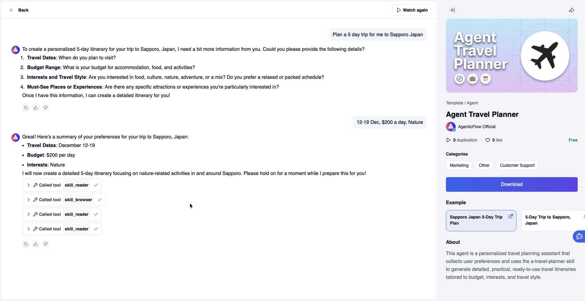 Templates can be used as they are, or you can clone them to create a customized version. Cloning a template creates a copy in your account, giving you full permission to modify it according to your preferences. This flexibility allows you to tailor workflows to your specific business processes while leveraging the robust framework provided by AgenticFlow AI.