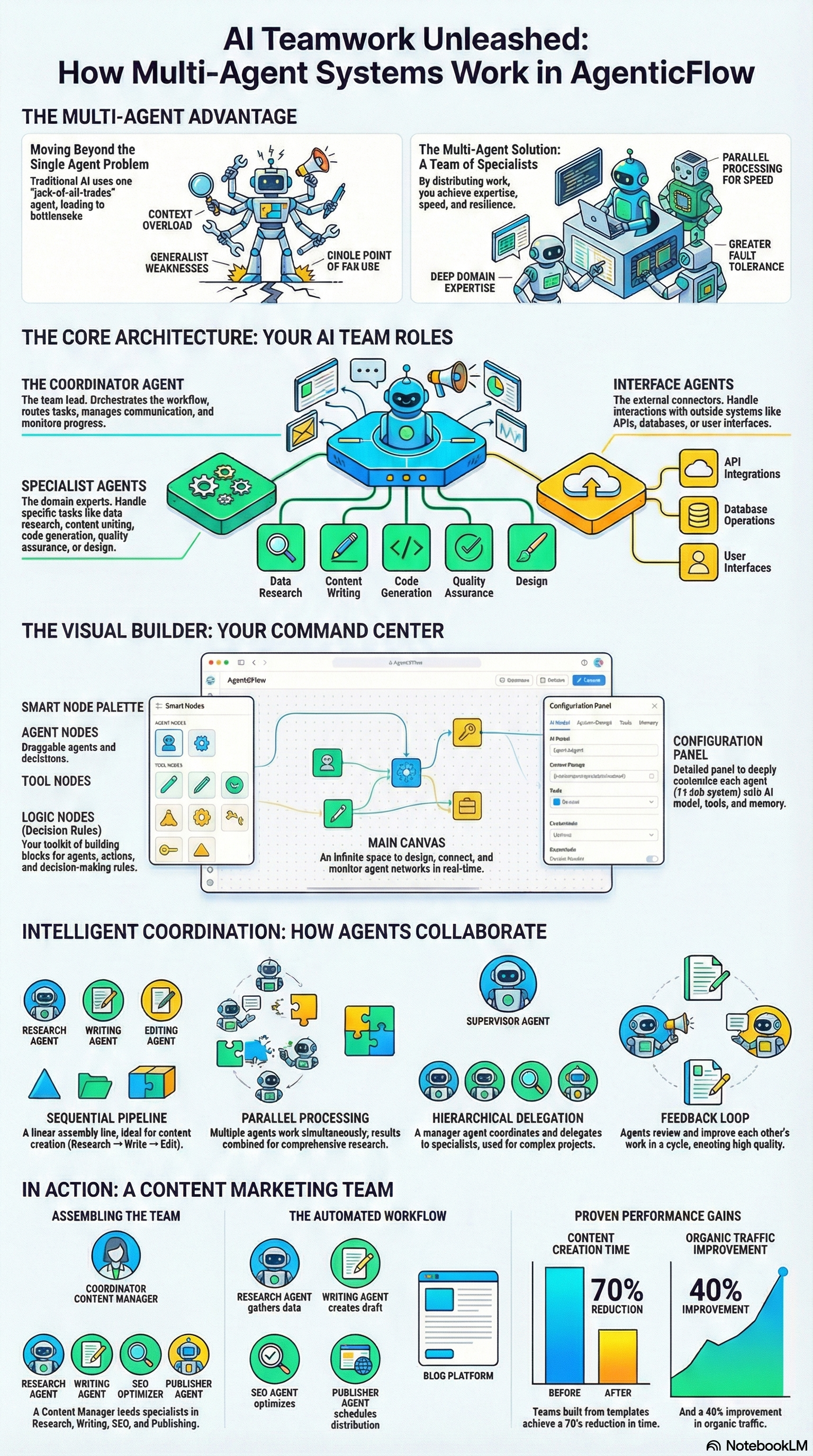 Build sophisticated multi-agent teams with AgenticFlow's visual Workforce orchestration system. Our most powerful feature.
